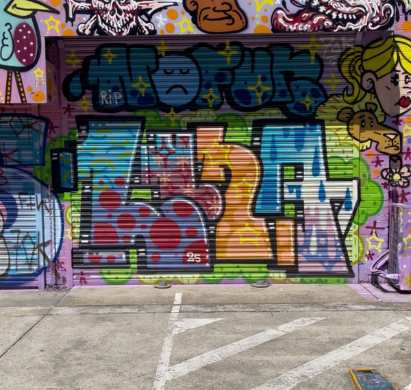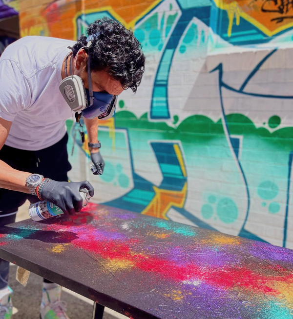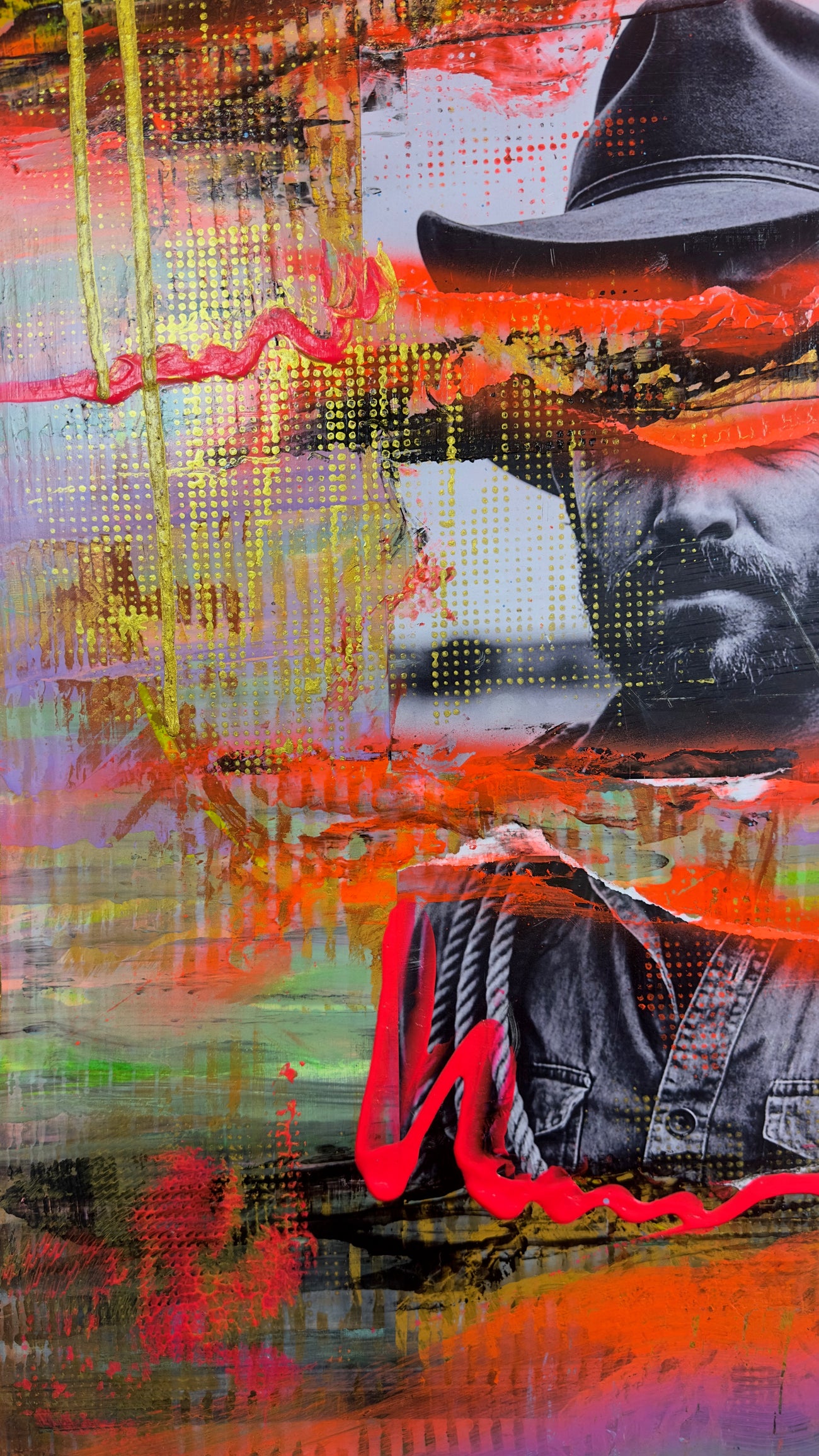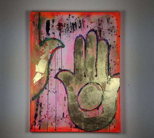 Acrylic, spray paint & mixed media on canvas