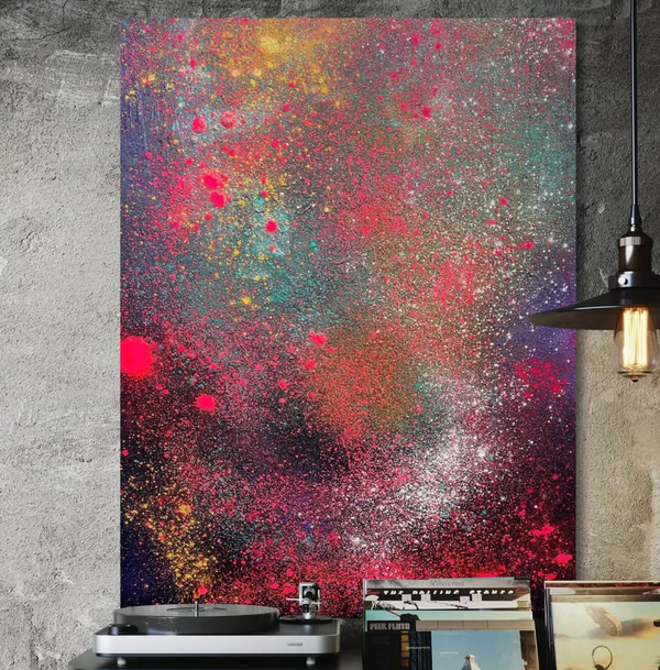 Printed art, Acrylic paint, spray paint and UV pigment on a double thick canvas Premium.