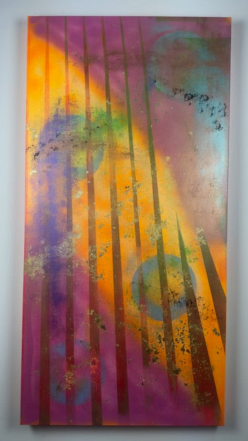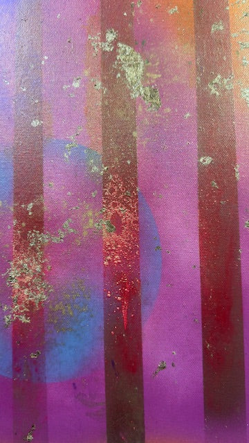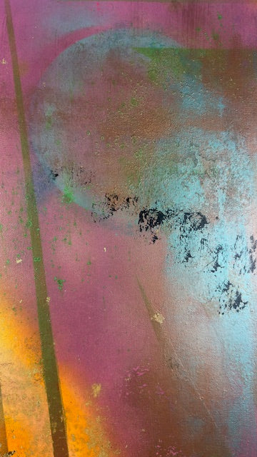 Acrylic paint, spray paint and UV pigment on a double thick canvas Premium.